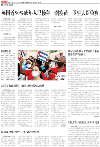 英国近90%成年人已接种一剂疫苗 卫生大臣染疫