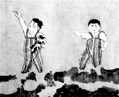 在卜天寿小朋友的“作业”出土后,过了10年,同一地区,也就是新疆维吾尔自治区阿斯塔纳TAM187号墓出土了绢画《双童图》。这一下,我们就知道卜天寿小朋友如此渴望假期到底是为了什么啦!这幅《双童图》描述的是唐代儿童在林间嬉戏的场景,他们穿着彩色背带裤,大红色鞋子,胖嘟嘟的,无比可爱。左侧的小孩手中抱着卷毛小狗,满脸开心,原来唐代小朋友也喜欢撸狗玩。而这只卷毛小狗,其实是我们现代“哈巴狗”的最初形态,由唐代初年从东罗马帝国传入内地,产自唐朝西域地区。