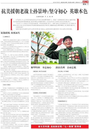 抗美援朝老战士孙景坤:坚守初心 英雄本色