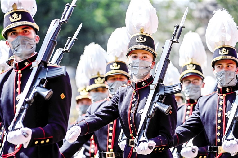 比利时21日在布鲁塞尔举行国庆阅兵及庆祝活动。受一周前发生的特大洪灾影响,今年比利时的国庆活动缩减了规模,原定在布鲁塞尔举行的大型舞会以及烟花燃放等活动全部取消。(据新华社报道)