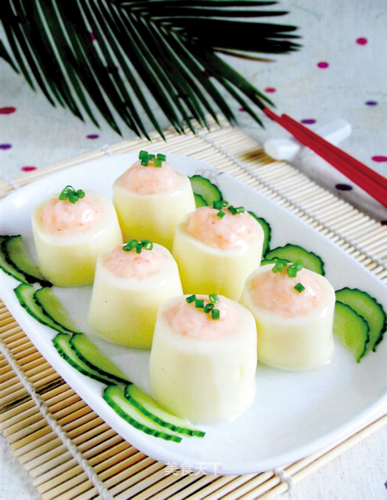 6.放入锅中蒸5分钟左右。盘子里的原汤倒入锅中,加入少许水淀粉勾成薄芡,淋于菜盘中,然后撒上少许香葱末增味。文/小 易