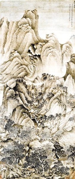 元代画家王蒙创作的《夏山高隐图》则是另外一种景致。这是一幅设色绢本画,纵149厘米,横63.5厘米。现收藏于北京故宫博物院。画的上部崇山峻岭,层峦叠嶂,瀑布孤悬,万木峥嵘。山的中部林木青翠,枝繁叶茂,梵宇僧楼掩映期间,若隐若现。山下溪水潺潺,森林茂密,茅舍草屋,左右错落,一座木桥横卧山涧之上连接两处房舍。右侧房子草檐瓦顶,室内一隐士高人手持羽扇踞坐榻上,一童子捧盘侍奉左右,室外一童子正在训鹤;左侧为一农家草房,门悬竹帘,屋内陈设两个条凳,一妇人坐于屋中似在做针线,屋外一男子端盆去溪中取水,庭院石凳前一犬静卧,生活气息浓郁。山间小路上,一人行色匆匆,似从上面别墅中而来,可能去山下会见高人,抑或去草屋走亲访友。《夏山高隐图》技巧水墨清华,笔法自如,笔墨湿润,采用兼工带写的笔法,刻画精细,墨气淳厚;构图虽繁密,但作者巧妙地运用了实中求虚、疏密对比之法,安排得有条不紊,可谓王蒙山水画之精品。全幅气势恢宏,一派静谧清幽的意境,真是一处可居可游的佳景。右上自题:“夏山高隐,至正二十五年四月十七日,黄鹤山人王蒙为彦明征士画于吴门之寓舍”。王蒙,字叔明,号黄鹤山樵、香光居士,吴兴(今浙江湖州)人。工诗文书法,善画山水,为“元四大家”之一。至正二十五年为1365年,王蒙时年57岁。此时正是其创作的高峰期,这一时期他画有大量以隐居为题材的作品。