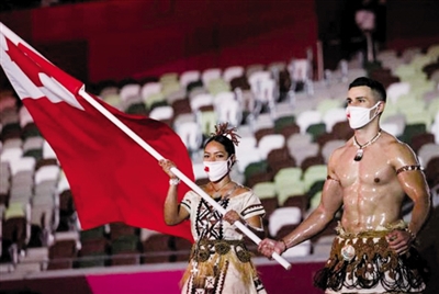 没错,他就是里约奥运会和平昌冬奥会开幕式上,那个光着膀子,上身涂油的汤加“半裸哥”皮塔。东京奥运会开幕当晚,皮塔·塔乌法托法再次半裸抹油出场。