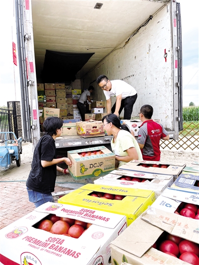 7月26日,即将发往河南省新乡市的两万斤蔬菜正在装车。近日,河南多地遭遇强降雨,灾区人民生活受到严重影响。一方有难,八方支援,呼和浩特市科技特派员曹鹏、宋瑶、贾雯、朱耀富紧急调集两万斤蔬菜驰援河南省新乡市。据了解,4位科技特派员向河南灾区捐赠的蔬菜总价为33580元,5000元运输费他们也一并承担了下来。27日晚间,这批蔬菜顺利抵达新乡市,28日开始向当地群众发放。