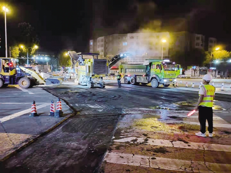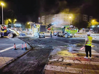 夜间施工 首府对通道路部分路段 进行大修改造