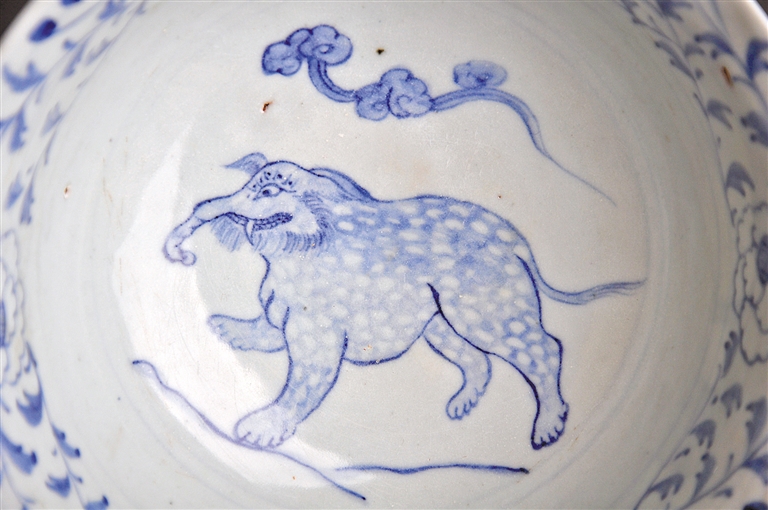 元代景德镇窑青花貘纹碗的发现是一次偶然。