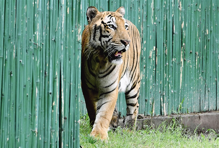 这是8月1日在印度新德里动物园拍摄的孟加拉虎。因新冠疫情而关闭的印度新德里动物园当日重新对公众开放。 (据新华社报道)
