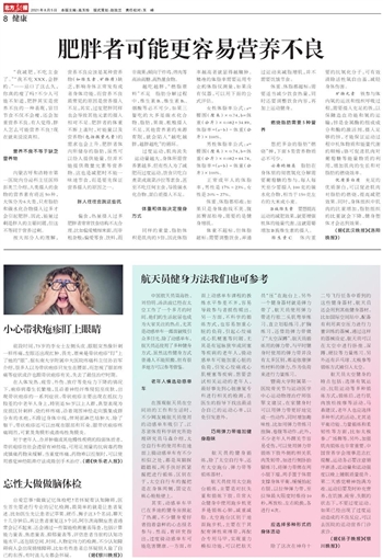 航天员太空健身的特点包括:选择有氧运动、抗阻运动等多种锻炼方式;锻炼后,进行肌肉放松按摩等活动。马森建议,老年人也应选择多种形式的活动,尤其是平衡功能、力量锻炼和柔韧性等方面,比如太极拳、广场舞等。另外,加强肌肉锻炼也非常重要。中国营养学会理事范志红提醒,运动务必要注意循序渐进,运动量和运动强度以晚上睡眠质量提升、第二天感觉精神饱满为准。运动后要及时补充营养,在饥饿、疲劳、失眠的状态下,不要过度运动。如果已经出现了过度运动造成的不良反应,可以去医院的运动营养门诊求诊。