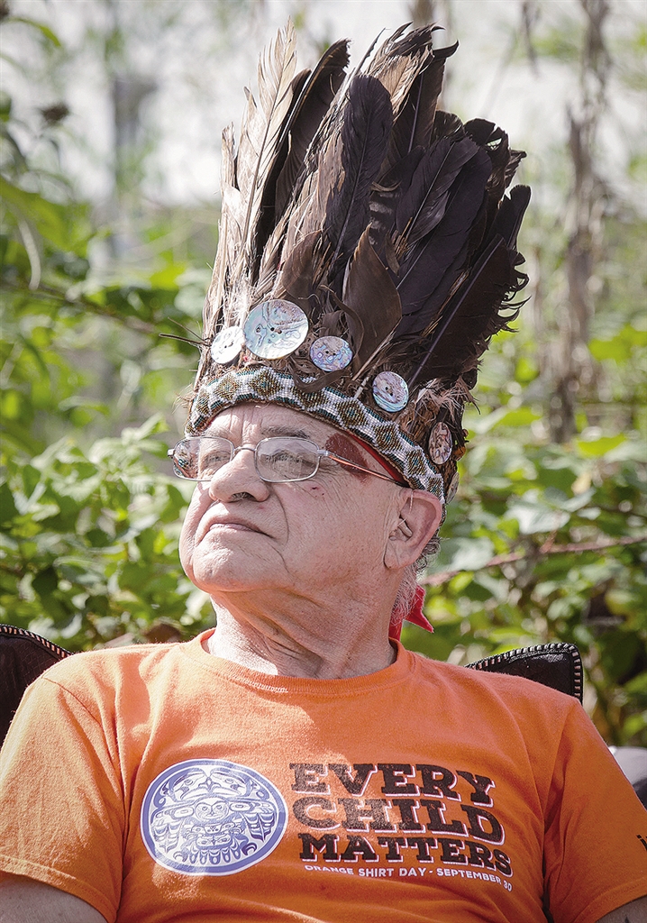8月10日,在加拿大北温哥华“圣保罗印第安寄宿学校”旧址,一名原住民寄宿学校幸存者出席新闻发布会。加拿大不列颠哥伦比亚省的三个原住民部族10日宣布,将对位于北温哥华的“圣保罗印第安寄宿学校”旧址展开调查。(据新华社报道)