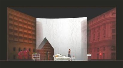 “多种可能”也体现在舞台语汇的探索创新。新版《日出》不仅有原创的现代感配乐,也借助灯光、投影甚至GoPro相机等打造一个如真似幻的舞台。在第一幕的排演中,记者看到偌大的舞台简单地立着一张沙发,一个摆着电话的矮凳和亮着荧光色的酒柜,舞台中央的立墙上投影着雪白的霜,霜变化成了水,汩汩流下,给人浮荡空寂之感。到了第二幕,立墙上的霜又化作了一尾鱼,周而复始地游来游去。 “我想说美好的东西就像这霜一样转瞬即逝,而剧中所有的人都像困在缸里的一条鱼,他们是不自由的。”冯远征解释道。舞台两侧的纱幕后,几个打麻将的人的身影贯穿第二幕始终,翠喜在宝和下处“接客”、黑三等人搜寻小东西的情景也是在纱幕背后表演,多个时空的情节并行不悖,舞台的表演空间被拓展,观众也仿佛身置高空,以“上帝之眼”俯瞰着剧中之人。 “我希望能打造一种简洁、间离的舞台效果。”冯远征说。