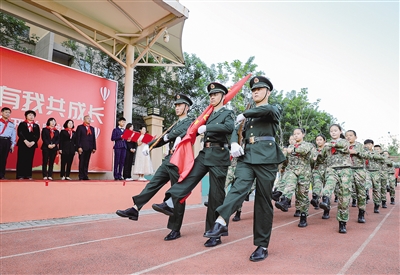 “升国旗、奏国歌,少先队员敬队礼!”9月1日,呼和浩特市锡林南路小学分校举行了开学典礼。为了培养学生们的爱国意识、厚植爱国主义情怀,该校特邀请呼和浩特警备区赛罕区人民武装部应急连某排排长张建伟一行参与开学典礼。升旗仪式上,张建伟与战友的飒爽英姿让孩子们大为折服,在雄壮的国歌声中,在师生的瞩目下,五星红旗缓缓升起,同时升起的还有新学期的新希望。(相关报道见5版)
