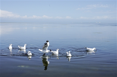 秋日,不少水鸟在青海湖畔栖息觅食。 摄影/新华社记者 张 军
