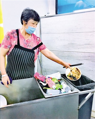 虽然,适量点餐、剩菜打包正在或者已经成为很多市民在外就餐的消费习惯,但在一些大型饭店和美食广场,餐饮浪费现象仍然存在。8月22日中午,记者来到维多利购物中心六楼美食广场,广场多处醒目位置都张贴着提示标语,提醒消费者文明用餐、节约粮食。记者粗略观察了一圈,大多数市民都做到光盘行动,可点餐后只吃几口就剩下的顾客也大有人在。“每天要收拾一大桶剩饭剩菜,大部分顾客都能吃完,但也有不少顾客几乎没动筷子,全部都浪费了。”清洁人员高女士正将剩饭剩菜倒入小推车内,她说,每当清理这些剩下的饭菜时,都觉得特别可惜。13时许,海亮广场五楼金米客美食城正值用餐高峰,记者看到,各家档口都是生意火爆,不少顾客拿着餐盘点餐,一些顾客的餐盘内都会剩下多量饭菜。一名食客告诉记者,饭菜口味不佳,所以就剩下了。