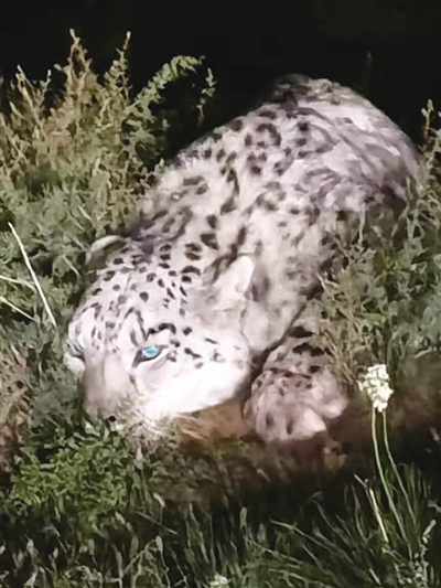 9月5日17时30分许,乌兰察布市四子王旗公安局食药环大队接到辖区牧民报警,称在巴音敖包苏木境内回家途中发现一只雪白的“大猫”趴在草地上,不知道这只“大猫”是不是国家珍稀动物。食药环大队民警及管区民警迅速赶到牧民所描述的地方,发现一只体型很大类似猫科的动物,经确认是国家一级保护动物雪豹。现场民警运用设备观察这只雪豹,其体外并没有明显伤痕。雪豹发现有人靠近它,便起身缓慢前行,民警们远远相随守护。同时,民警将发现雪豹一事向相关部门做了详细汇报。
