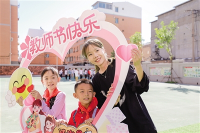 9月9日,呼和浩特市玉泉区恒昌店巷小学师生同框合影留念,共庆教师节的到来。当日,该校举行“难忘师恩”主题教育活动,师生通过同框合影、趣味运动等方式,传递浓浓师生情谊,迎接教师节。