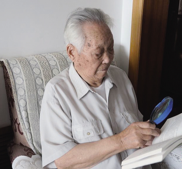 随着年龄的增长,原先只戴老花镜看书的郭瑞祥,现在还得右手拿着放大镜。