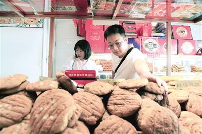 9月14日,市民在呼和浩特市回民区宽巷子某店内选购月饼。中秋将至,月饼成了节日市场的主角,传统手工月饼坚持纯手工制作,月饼香甜、松软,加上包装简单,价格实惠,更受本地居民的欢迎。