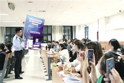 呼和浩特市玉泉区公安分局法制教育宣传小分队近日走进内蒙古大学南校区,为大学生详细讲解电信网络诈骗的社会危害及防范措施。民警通过现场宣讲、发放宣传手册、引导学生安装国家反诈中心APP等方式,提升大学生的自我防范意识。 摄影/北方新报正北方网记者 刘 惠
