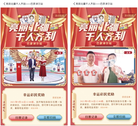 活动当天,所有参与活动的销售站在统一时间、统一地点,组织彩民对已购买的即开票“12星座”进行刮奖,刮奖过程通过销售站内“一体机”及手机端向全区彩民同步直播。内蒙古福彩中心还为中出一等奖10万元、三等奖5000元、四等奖1000元、五等奖50元的彩民进行翻番派奖,并在直播中抽取幸运彩民进行红包派送。