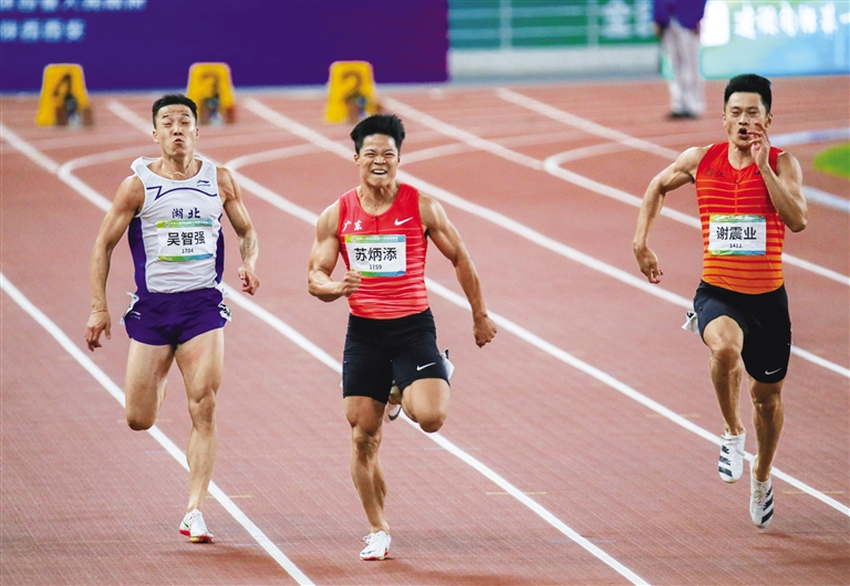 东京奥运会上,苏炳添以创亚洲纪录的9秒83杀入百米决赛,他代表了中国速度、亚洲速度。来到全运会的赛场,所有人都期待苏炳添再一次带来惊喜。苏炳添也没让人失望,决赛中起跑有力,30米过后冲到了第一位。60米过后已经一马当先。9秒95,苏炳添第10次跑进10秒,夺得全运会百米金牌。苏炳添的中秋之夜,十全十美。