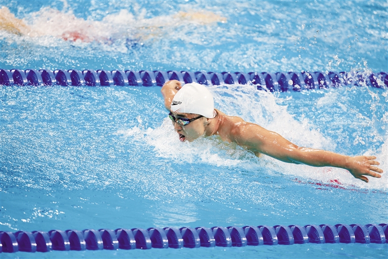 据了解,本届全运会内蒙古代表团首次参加游泳项目的争夺。由于天赋优越,训练刻苦,牛广盛发展十分全面,这次全运会共参加男子100米仰泳、100米蝶泳、200米蝶泳和1500米自由泳4个项目,是名副其实的全能小将。“我进入专业游泳队的训练其实只有4年,但我对自己很有信心,因为平时训练还是很到位的,所以不担心临场发挥。”牛广盛的言语间带着一份独属于00后的元气和自信,首次参加全运会,他没有给自己太多的心理负担,目标就是超越昨天的自己。