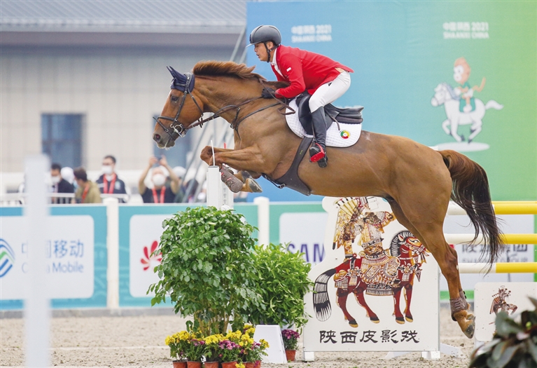 赛场上,内蒙古选手身着红色的骑士服格外醒目,他们与马儿默契配合,潇洒跨过横在地面的一道道障碍,犹如跳动的红色音符,吸引着观众的目光。在两轮比拼中,张睿以两轮0罚分的成绩完成比赛,精彩的表现引得欢呼声阵阵,他本人也兴奋地向看台上的观众挥手致意。老将刘同晏在第二轮比赛中掉杆两次,障碍罚分8分,下场后直言有些遗憾,“我们本来有4名队员参赛,但是达日玛的马匹受伤无法上场,这就要求我们3个人都不能出现太大失误。但是我的马库布齐今年已经18岁了,是陪我征战4届全运会的‘功臣’,这些障碍的高度对它来说确实有些吃力。”刘同晏说。