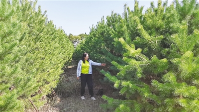 在石女士的苗圃种植园区记者看到,一棵棵樟子松和油松造型好看,满目青翠,长势喜人,远看已经形成树林,林下草种茂密。