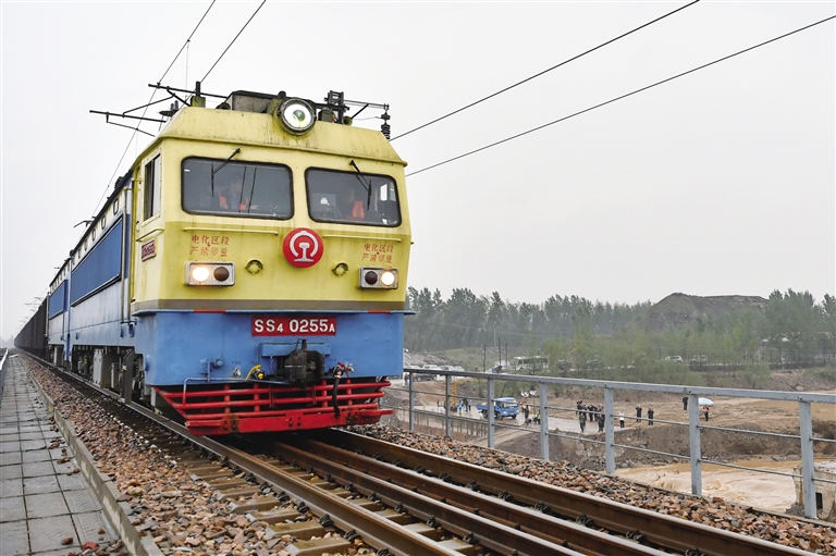 10月14日早晨,经昼夜抢修,山西境内因降雨中断行车的南同蒲铁路昌源河大桥下行线路修复开通。继10月8日该区段上行线开通后,南同蒲铁路双向恢复通车。