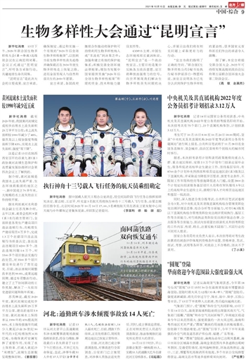 生物多样性大会通过“昆明宣言”