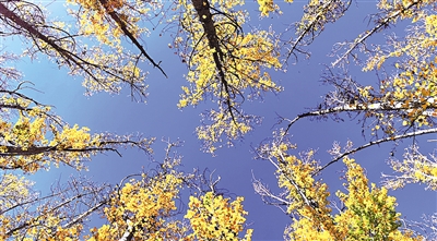 拉萨市林周县边交林乡一片树林(10月16日摄)。