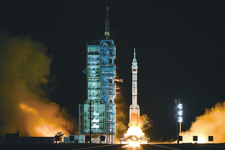 神箭冲碧宇,天和傲苍穹。从无人飞行到载人飞行,从舱内实验到太空行走,从一人一天到多人长期驻留……中国载人航天一步一个脚印地向着29年前制定的发展战略稳步前进。