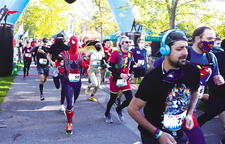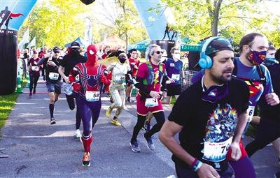 穿着动漫服装的人们在加拿大多伦多参加“变装”5公里长跑。10月24日,加拿大多伦多举行2021年“变装”5公里长跑,吸引数百名身着各式动漫服装的参赛者。(据新华社报道)