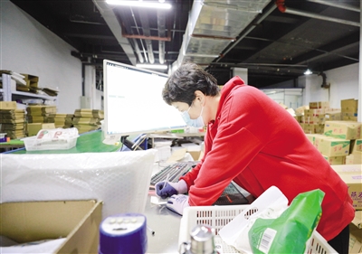 11月2日,京东中国特产·内蒙古馆的工作人员在整理商品。为切实加强疫情防控工作,进一步保障首府市场供应,尽可能降低感染风险,呼和浩特市9家电商企业发挥企业优势,承担社会责任,上线了米面粮油、蔬菜、水果等生活必需品。市民只需进入相关企业的线上商城,即时采购、限时送达,无接触配送。摄影/北方新报正北方网首席记者 牛天甲
