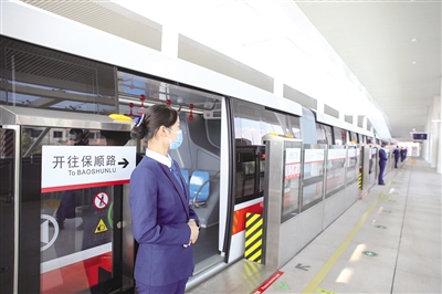 当日,安徽省芜湖市轨道交通1号线开通运营。该线路是一条无人驾驶跨座式单轨,全长约30公里,沿城市南北向铺设,设高架站25座,设计时速80公里。开通运营后,将有效缓解交通拥堵状况,方便市民生活。摄影/新华社记者 曹 力