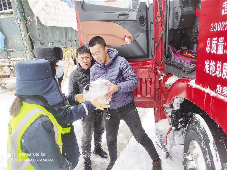 大雪来临,奈曼东收费所按照要求关闭了高速公路,有的司机守在高速公路站等待开通。然而,收费所附近没有商店、饭店和旅店,奈曼东收费所工作人员为滞留的司机师傅送去午餐和热水,尽力帮助司机们解决困难。