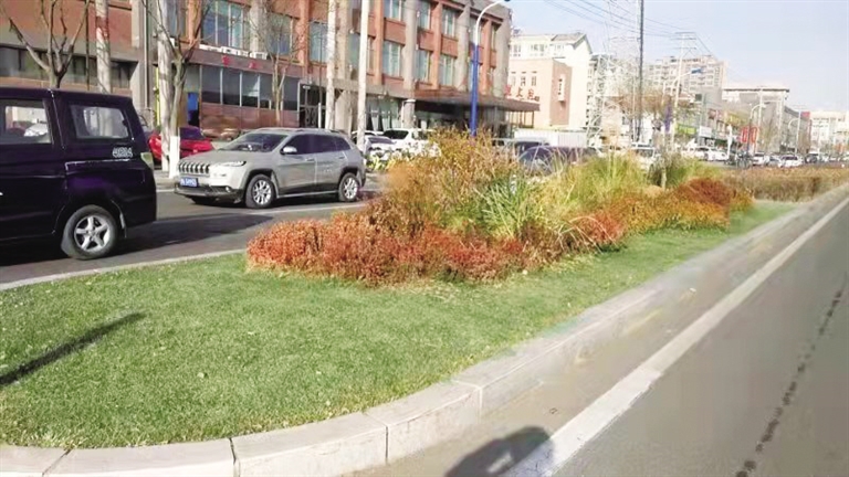 当日,记者注意到,在丁香路与学苑东街十字路口以北的绿化带内,园林造景呈现红、黄、绿相间的缤纷色彩,根据层次深浅、高低错落置景,将首府的浓墨重彩定格在深秋时分,完全不似冬日景象。