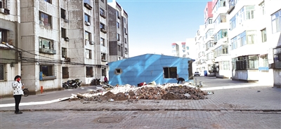 11月10日,记者来到青年路18号街坊采访。居民王女士告诉记者,青年路18号街坊分东西两个院,西院住的是包钢职工和搬迁户,东院是自购商品房的居民。付13栋的位置比较特殊,楼体东侧出口只有4米左右宽,仅能通行一辆私家车,开车出入很不方便。开车的居民们大部分从西口进出。三供一业改造过程中,包钢虹苑物业公司为了便于管理西院居住的包钢职工和搬迁户,要在东西两院中间的付13栋与8栋之间建起一面墙,把小区一分为二。这样付13栋居民的车辆只能从东侧一个4米宽的出口进出。付13栋的居民们认为,如果高峰期或者有消防车、救护车通行的话,存在很大安全隐患。