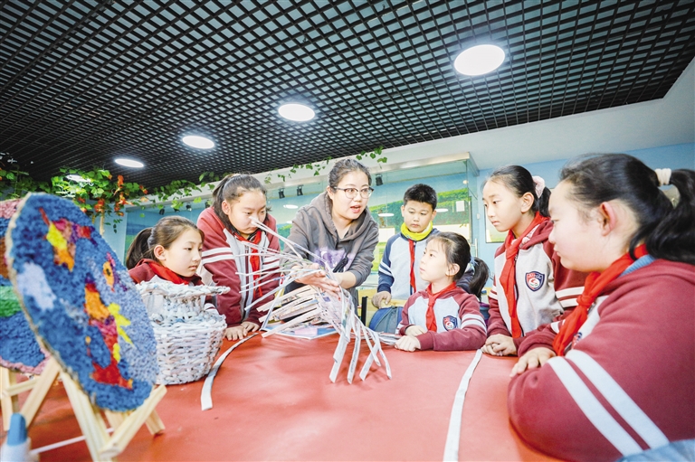 该校副教导主任王蒙原告诉记者,学校从2018年开设“纸艺编织”社团课程,从生活中使用的纸艺产品汲取灵感,真正培养孩子们“学得会、用得上、带的走”的动手技能。纸艺社团坚持环保理念、有效利用废物,制作过程有趣,陶冶身心,深受学生的喜爱。学生们做出的纸艺作品颜色鲜艳,牢固易保存,大家在玩中学、做中学,既展现了他们丰富的想像力,又在编织的过程中锻炼了一定的构图设计能力和动手能力,将中华优秀传统文化传承发扬。