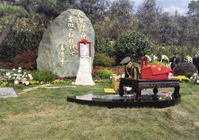 11时,骨灰安放仪式正式开始。中国工程院院士罗锡文为自己的老朋友主持安放仪式。袁隆平院士的三个儿子站在最前排,他们将手放在父亲的骨灰盒上静静默哀,在礼宾人员引导下将父亲的骨灰安放进墓穴。随后,袁隆平院士的家人一一上前为老人墓地添土,参加仪式的人向袁隆平院士墓碑行三鞠躬礼。