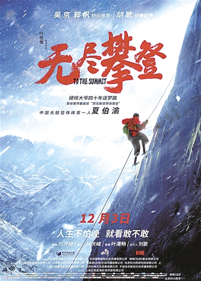 在发布的“8848.86”定档预告中,在极端凶险的自然条件下,古稀之年的夏伯渝借助假肢勇敢前行着,精钢铁骨所到之处都在雪地上印刻出深深的脚印,他在40年中4次冲击顶峰,最近的一次离珠峰顶只有94米。硬核大爷在69岁高龄再次向珠峰顶发起冲击,克服身体的局限,完成高强度的训练,日复一日的坚持,最终让这座世界屋脊接纳了夏伯渝。