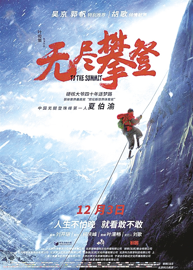《无尽攀登》也让有梦想的电影人相聚一堂。导演叶俊策曾在电影《流浪地球》中担任编剧;剪辑叶濡畅也曾任《流浪地球》的剪辑与编剧。担任电影《无尽攀登》出品人的吴京则因电影《攀登者》与夏伯渝结缘并被他的壮举深深感动,义无反顾为《无尽攀登》添砖加瓦;而《无尽攀登》的另一位出品人,导演郭帆也与影片有着不解之缘,他表示:“我创作拍摄《流浪地球》时得到了许多帮助与鼓舞,导演和剪辑两个小叶都是‘小破球’大家庭的一分子,能够助力更多新影人我责无旁贷。”