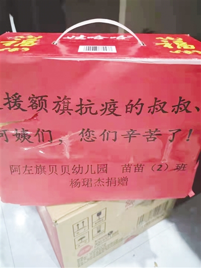 据了解,捐赠八宝粥和水的小朋友名叫杨珺杰,是阿拉善左旗贝贝幼儿园苗苗(2)班的学生。自疫情发生以来,她每天会和家人一起收看相关的新闻报道,看到奋战在抗疫一线的医务人员、公安民警等群体的感人新闻,她常会感动到落泪。