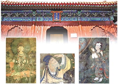 现如今,在法海寺,还能存留下的四样宝贝,分别是:明代壁画、明代藻井、白皮古松,以及一口明代铜钟。在这四宝之内,铜钟目前收藏于大钟寺博物馆里。古松围绕着大雄宝殿,而壁画与藻井,则都在大殿内。