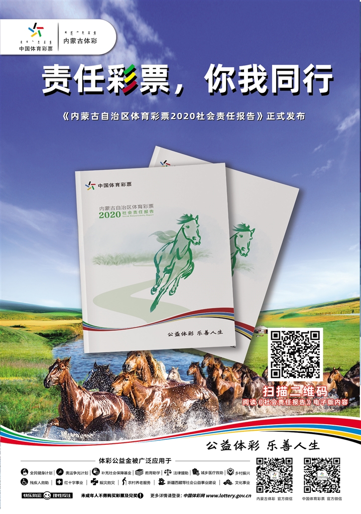 《内蒙古自治区体育彩票2020年社会责任报告》的发布,标志着内蒙古自治区体育彩票销售管理中心在责任彩票建设方面迈出了新的重要步伐。展望未来,内蒙古自治区体育彩票销售管理中心将作为新时代责任彩票建设积极的推动者和实践者,始终秉承“建设负责任、可信赖、健康持续发展的国家公益彩票”的发展目标,为促进中国体育彩票事业发展而努力奋斗!