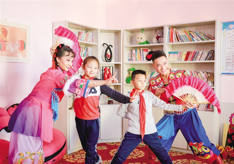 11月23日,内蒙古艺术剧院的演员正在指导孩子们二人台表演。据了解,11月21日,内蒙古自治区“百团千场”下基层惠民演出活动在锡林郭勒盟苏尼特右旗启动,将持续至2022年2月21日。期间,各乌兰牧骑及内蒙古艺术剧院等演出团体将深入基层开展主题宣传宣讲、下基层惠民演出活动,以文艺演出的形式,让民族团结进步理念、铸牢中华民族共同体意识深入人心。摄影/北方新报正北方网首席记者 牛天甲