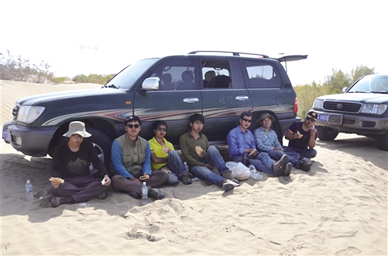 大漠空高尘不飞,新秋塞上草犹肥。不过,沙漠考察并非“到此一游”,没有那么多的诗情画意。科学家要做的是在浩瀚的沙海里询证。车子出问题是常见的事,他们就先推车再工作。每天的午饭都又干又硬的烤馕。“时间长了师傅就不愿意啦。”杨小平向《中国科学报》说道。