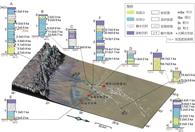 基于34个独立光释光年龄和样品的沉积物粒度及磁化率分析,他们发现,塔克拉玛干沙漠在近10万年以来至少经历过三个比较典型的湿润时段,即距今约7万~5万年前,1.7万~1.1万年前和距今5000~2000年前。