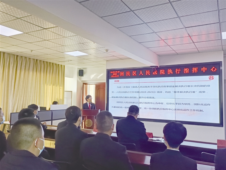 11月11日,呼和浩特市回民区法院执行指挥中心实体化运行启动仪式在该院举行,这标志着回民区法院执行工作运行模式的全新升级。新模式建立了以执行指挥中心为中枢,信息化手段为依托,团队化运行为基础的统一管理、统一指挥、统一协调的工作机制,彻底改变了以往执行实施案件“一人包案到底”的传统办案方式,建立了分段式、集约化、专业化的新型办案机制。该机制系统化整合办案力量,坚持不同执行环节不同人员负责的原则,进一步明确职责,最大限度地化解腐败风险,同时坚持繁简分流、轻重分离、快慢分道原则,实行简案快执、繁案精执,进一步提高了办案效率。