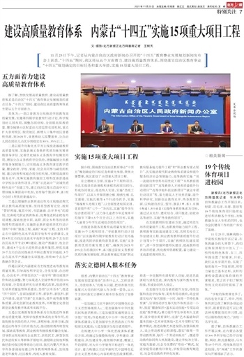 建设高质量教育体系 内蒙古“十四五”实施15项重大项目工程
