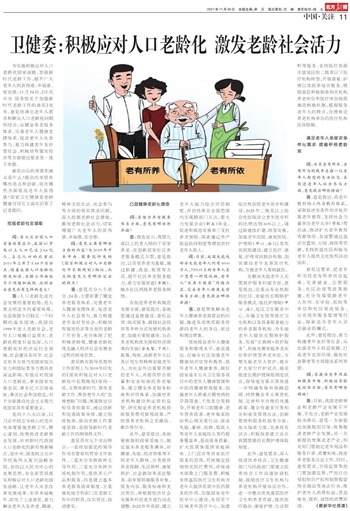 卫健委:积极应对人口老龄化 激发老龄社会活力